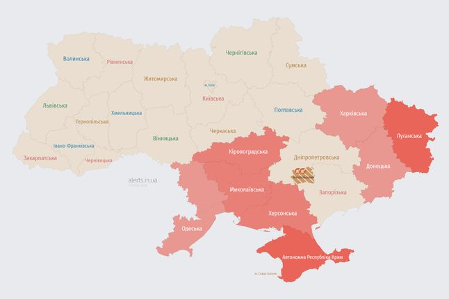 Alarm sirens sounded in Vinnytsia region. However, alarms were canceled in eastern Ukraine in Kharkiv and Donetsk regions.